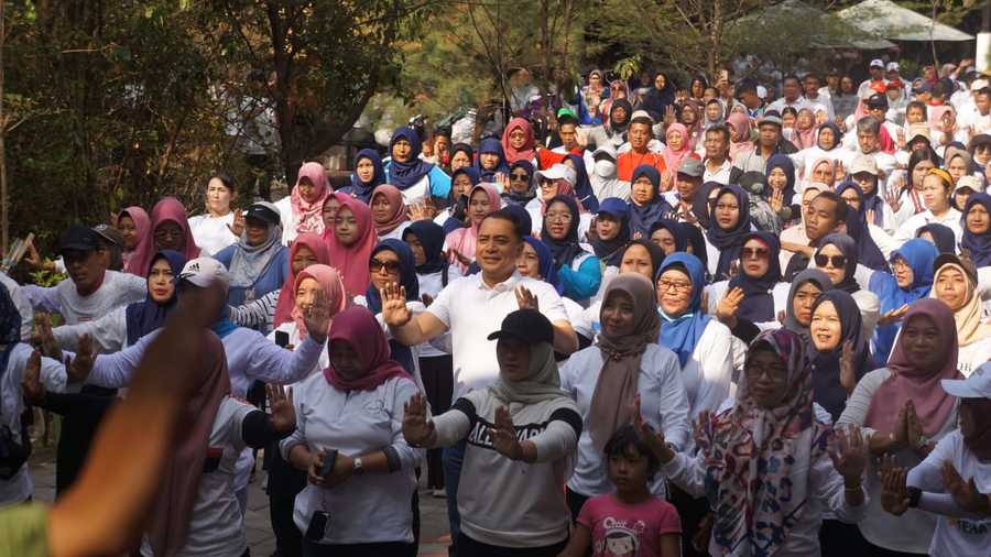 Senam Bersama di Kebun Raya Mangrove, Wali Kota Eri Beri Hadiah Motor dan Sepeda untuk Guru